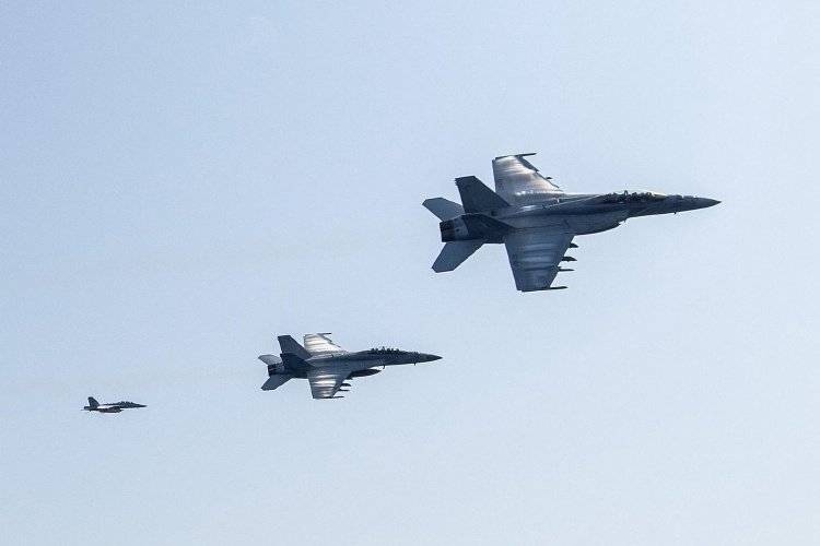 美国海军的F/A-18F“超级大黄蜂”战斗机在红海上空飞行。图据视觉中国
