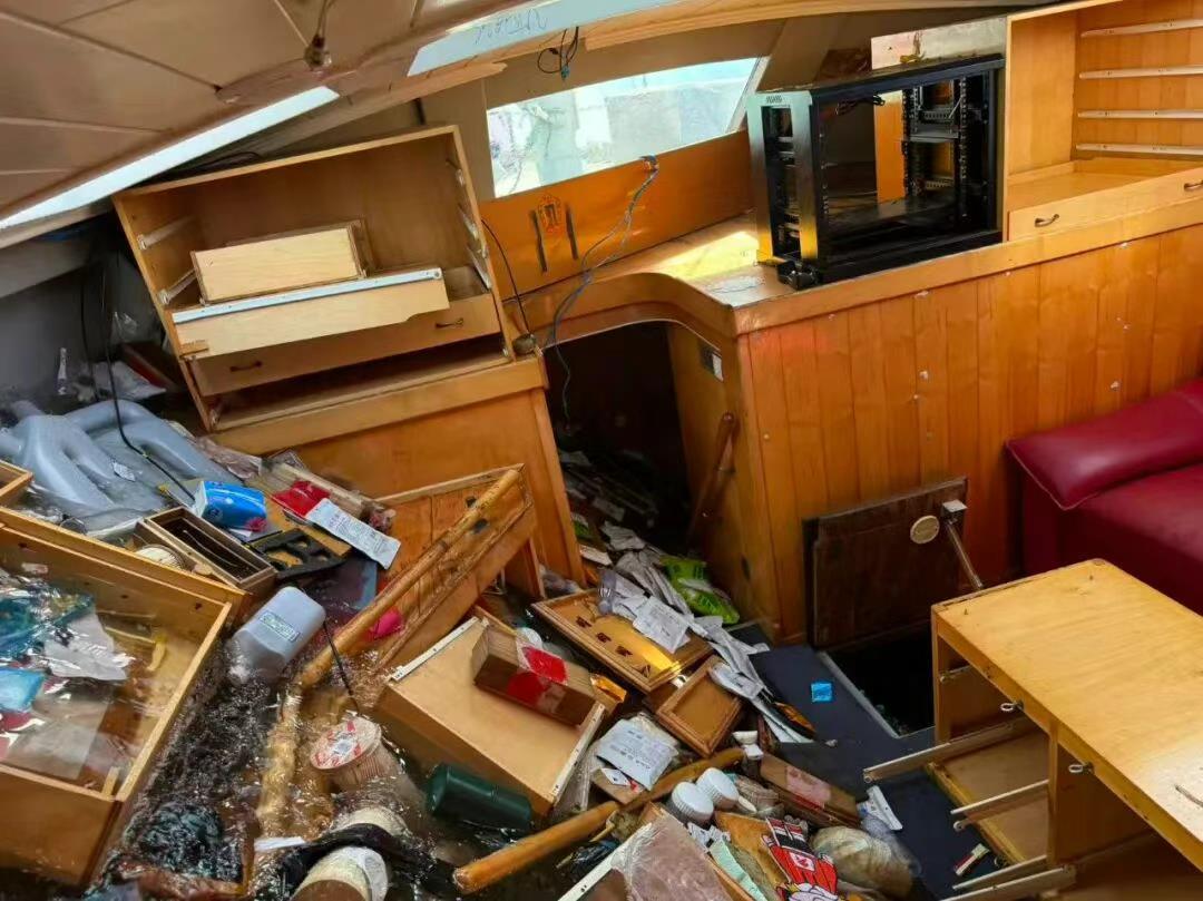 经现场核查,此次抢劫造成的损失极具破坏性:航行船只设备全部遭毁灭性劫掠拆毁,包括发动机、发电机、缆索帆具、救生艇、舷外机等核心部件,以及船上所有电器、家具等物品;船载功能性设备与财物悉数遗失,涵盖证件文书、通讯导航系统、摄影摄像器材、直播设备、海事卫星设备等全部必备物资;作案人员蓄意打开船底阀,导致全船舱室被海水长时间浸泡,这艘曾成功完成北冰洋环航的远洋帆船遭受毁灭性损伤,已完全丧失航行能力。