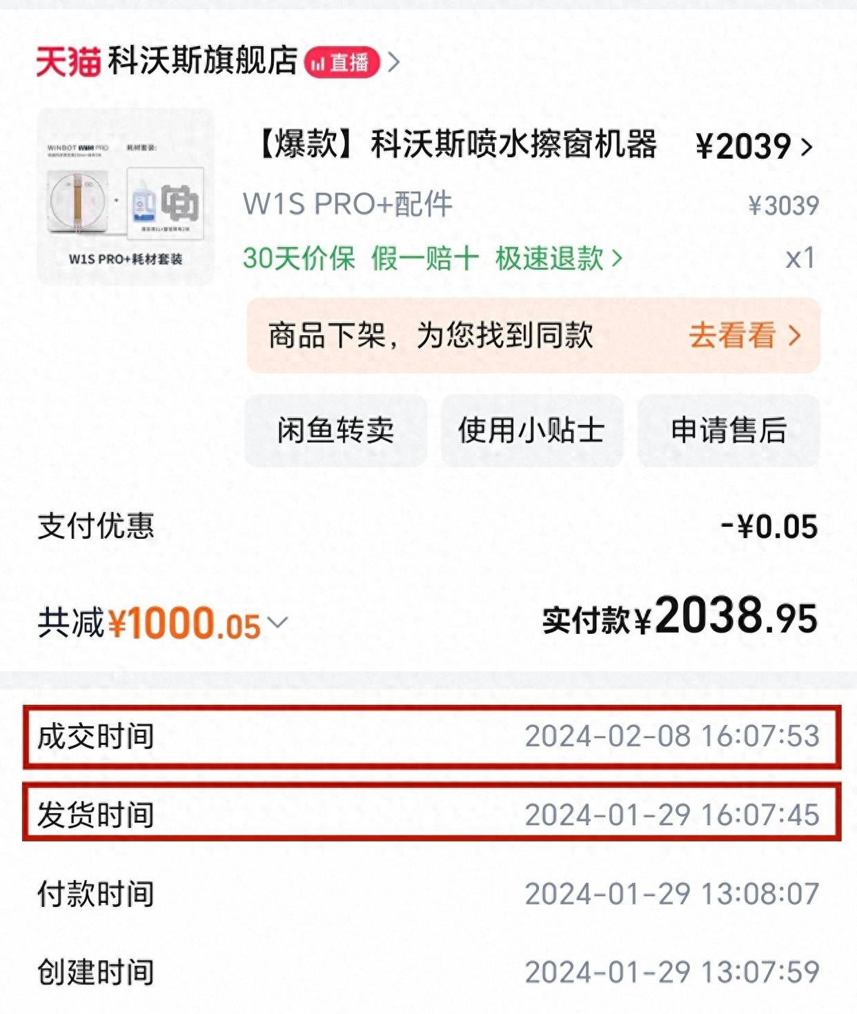据王先生介绍,2024年1月29日,他通过淘宝科沃斯官方旗舰店购买了科沃斯W1S喷水擦窗机器人,“刚买的时候使用感不错,没想到2025年3、4月份,也就是刚过质保期没多久,机器人就突然无法正常工作。”随后,王先生联系科沃斯客服申请售后维修,经售后检测后进行了维修处理,他支付了140元维修费。