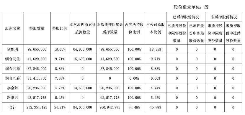 例如,因与中财招商投资集团商业保理有限公司存在约1.5亿元的保理合同纠纷,创能明、李金钟及其一致行动人润合同生需承担连带保证责任,其所持有的合计1.4亿股公司股份已于今年5月被司法冻结。