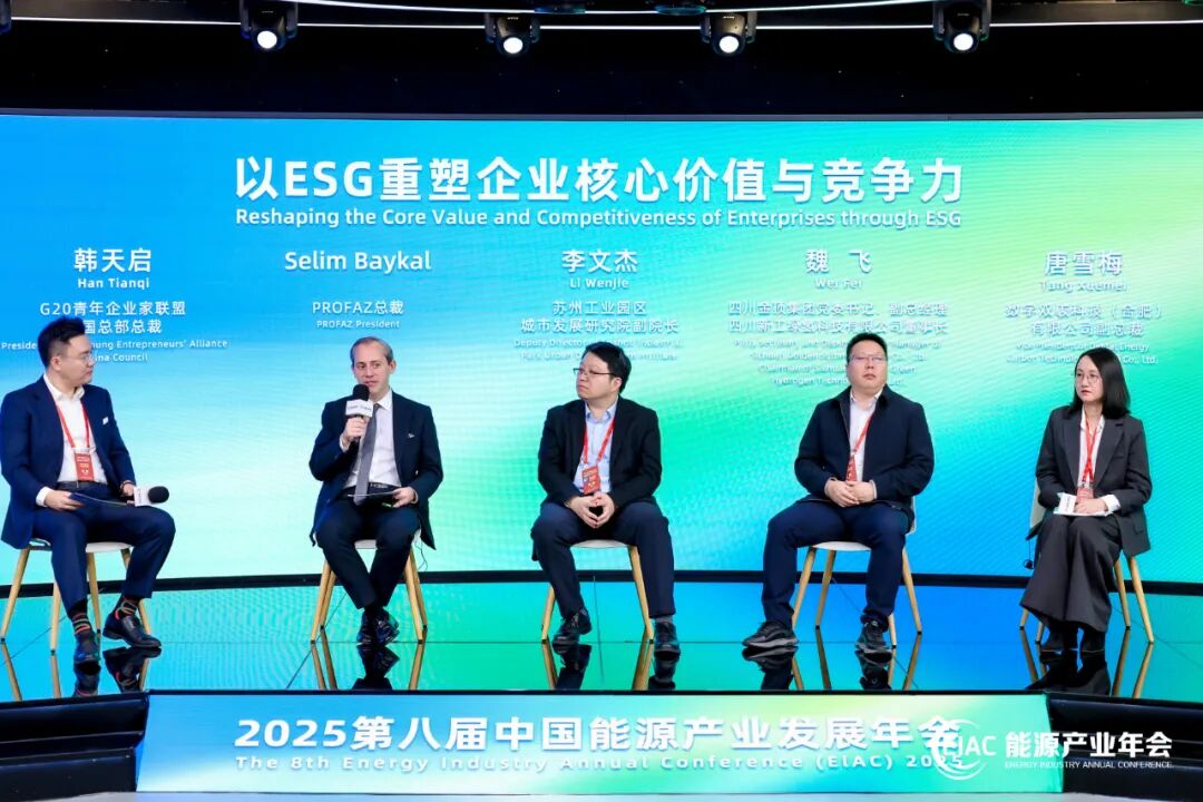 在“以ESG重塑企业核心价值与竞争力”为主题的圆桌对话环节,圆桌对话主持人G20青年企业家联盟中国总部总裁韩天启,与苏州工业园区城市发展研究院副院长李文杰、数字双碳科技(合肥)有限公司副总裁唐雪梅、PROFAZ董事长Selim Baykal,四川金顶集团党委书记、副总经理,四川新工绿氢科技有限公司董事长魏飞围绕ESG驱动企业价值重塑等展开热烈讨论。