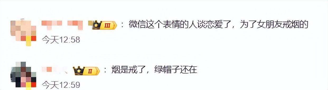 记者搜索发现这是微信经典"悠闲"表情(戴绿色头盔的小人),该表情包最初以叼烟形象传递"潇洒"意味,但2021年2月28日,微信通过云端更新移除香烟元素,改为嘴角上扬的笑脸。腾讯官宣"戒烟了"三字,话题“连微信新表情都戒烟了”阅读量超5.8亿。