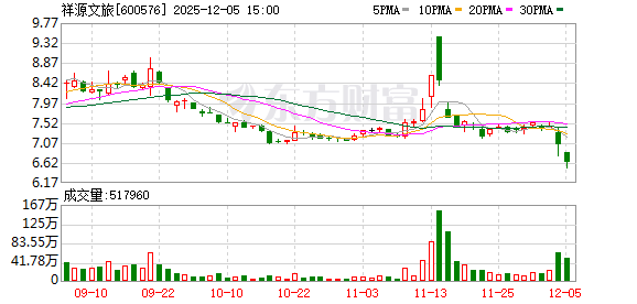 截至12月7日,祥源文旅股价收盘跌超5%,报6.63元/股,市值报70亿元。