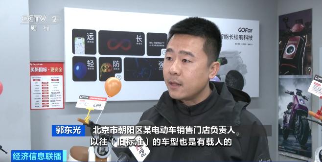 北京市朝阳区某电动车销售门店负责人 郭东光:以往(旧标准)的车型也是有载人的、有单人骑的,都是一样(有不同类型)的。(这两天)大概卖了4台,现在的淡季销量也还算可以。