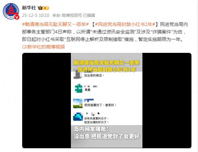 民进党当局内部事务主管部门近日称,以所谓“未通过资讯安全监测”及涉及“诈骗案件”为由,即日起对小红书采取“互联网停止解析及限制接取”措施,暂定实施期限为一年。