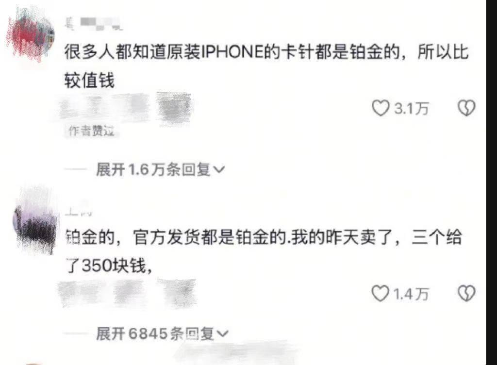 “苹果原装卡针铂金制成,回收价超300元”
