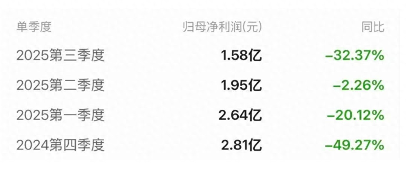 财报显示,今年前三季度,电投产融实现营业总收入36.5亿元,同比下降7.66%;归母净利润6.17亿元,同比下降19.20%;扣非净利润5.97亿元,同比下降20.83%;经营活动产生的现金流量净额为-3856.29万元,上年同期为14.86亿元。从单季度来看,电投产融已连续四个季度净利下滑。
