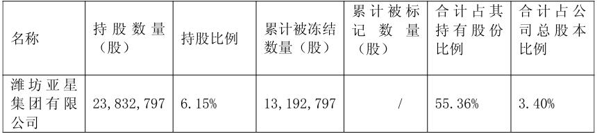 目前,亚星化学的控股股东是潍坊市城市建设发展投资集团有限公司,实际控制人是山东省潍坊市国资委。而亚星集团还持有2383.2797万股亚星化学股票,占上市公司总股本的比例为6.15%,其中1319.2797万股被冻结,即为此次司法拍卖的股票。