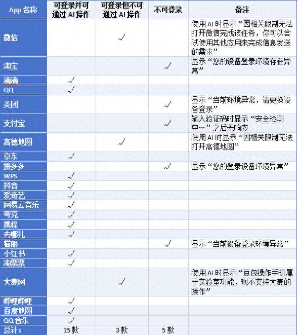 23款App中8款使用受限,15款仍可通过AI操作