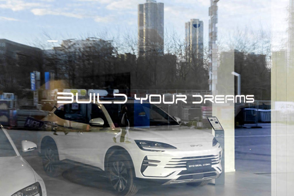 今年3月19日,法国楠泰尔,比亚迪电动汽车新展厅。(视觉中国)