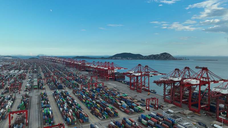 2025年12月10日洋山港开港运营满20周年。开港20年来,港口堆场在扩建、码头岸线在变长、靠港船型在变大、装卸作业在变快、进出船量在变多。如今洋山港累计建成深水岸线7950米,配置超大型智能桥吊104台,构建起涵盖105条国际航线的全球化航运网络,通达200余个国家和地区的重要港口节点,吸引全球主流航运企业挂靠洋山港。