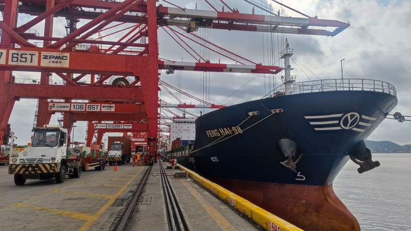 如今的洋山港凭其体量和规模,渐成反映我国国际贸易形势的风向标。外贸数据显示,今年前11个月,中国对外贸易顺差首次突破1万亿美元。体现在洋山港则是船量、货量的持续双增长。截至12月10日,洋山边检站已累计查验国际航行船舶超9980艘次,预计破万节点较去年提前12天。今年前11个月,洋山港各码头完成集装箱吞吐量2625万标准箱,同比上升9.7%。今年的船量和货量将继续双双创下历史新高。