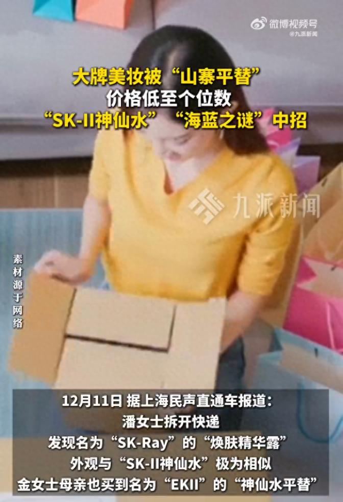 潘女士拆开快递,发现名为“SK-Ray”的“焕肤精华露”,外观与“SK-II神仙水”极为相似;金女士母亲也买到名为“EKII”的“神仙水平替”。近期,多名网友在社交平台分享类似经历,反映一种以“低价大牌”化妆品为诱饵的销售套路正依托微信生态快速蔓延。