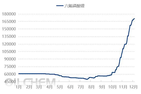 作为核心原材料的六氟磷酸锂,价格已涨至16.5万元/吨,年内涨幅超2倍。