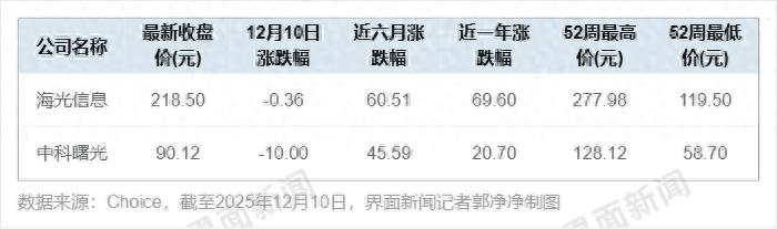 二级市场也一度反应热烈。从6月10日复牌至12月9日终止重组,海光信息、中科曙光股价均涨超60%。