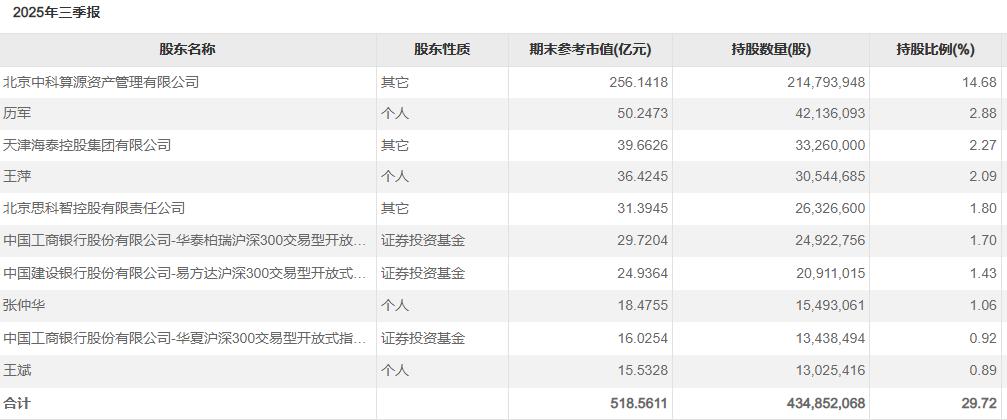 图片:中科曙光前十大持股名单