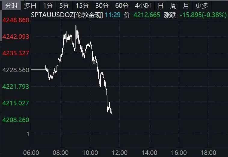 12月11日亚洲早盘国际金价一度走高,现货黄金站上4240美元/盎司,盘中突然跳水转为下跌。纽约期金也回落收窄涨幅。
