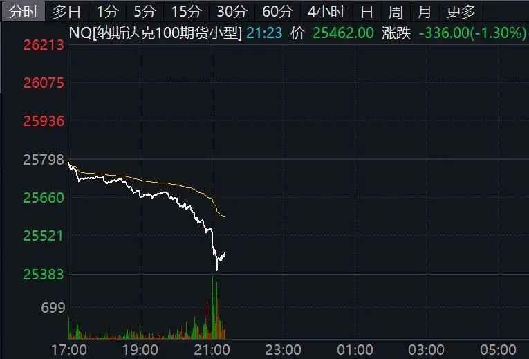 美股三大股指期货跌幅扩大,纳斯达克100指数期货一度下跌1.5%,标普500指数期货也跌近1%。