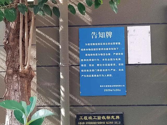 亳州圆通物流园内告知牌提醒物流园所在地块为物流用地,但仍有在此购房用于个人居住 摄影/本刊记者 周群峰