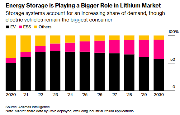 而此消彼长下,电池储能领域正成为锂需求的重要驱动力。