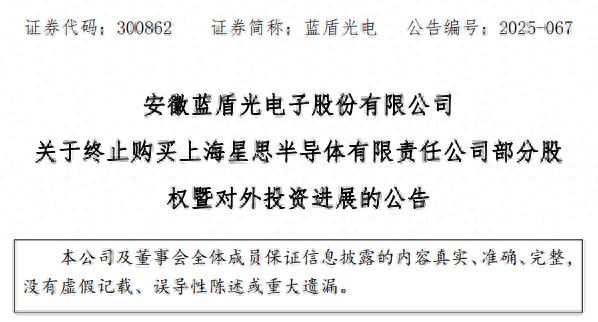 蓝盾光电表示,截至公告披露日,本次交易项下股权未交割,蓝芯合伙未支付股权转让价款。2025年12月10日,公司召开第七届董事会第七次会议,审议通过了《关于终止购买上海星思半导体有限责任公司部分股权的议案》,同意终止本次交易。