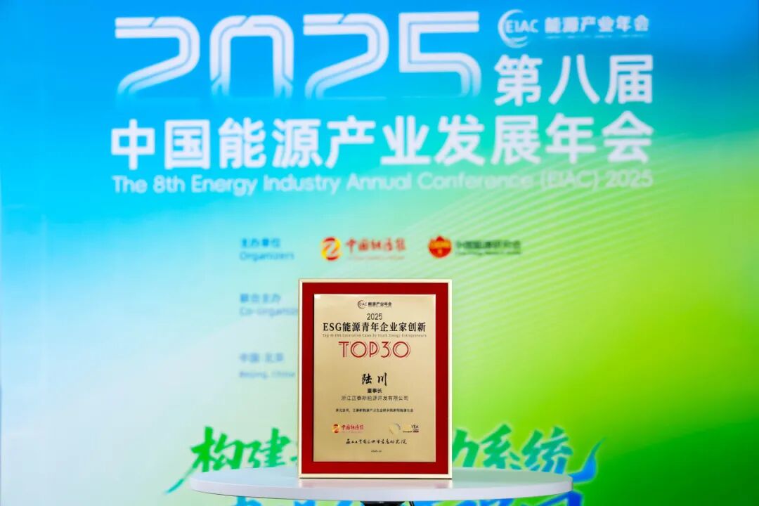 近日,由中国能源报、中国能源研究会主办,G20青年企业家联盟中国总部联合主办的2025第八届中国能源产业发展年会在北京举行。会议期间,备受关注的ESG能源青年企业家创新TOP30正式发布,正泰新能源董事长陆川凭借其在绿色能源领域多元协同的卓越实践,成功入选该榜单。