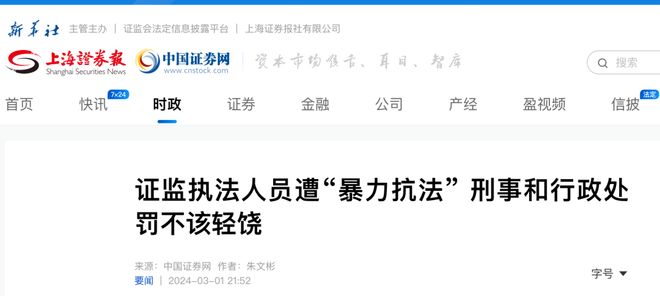 另据上海证券报2024年3月的一篇报道显示,在2024年2月23日举行的证监会新闻发布会上,证监会首席检查官、稽查局局长李明提到“深大通暴力抗法事件”是暴力抗法的典型事例。