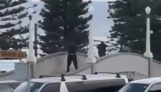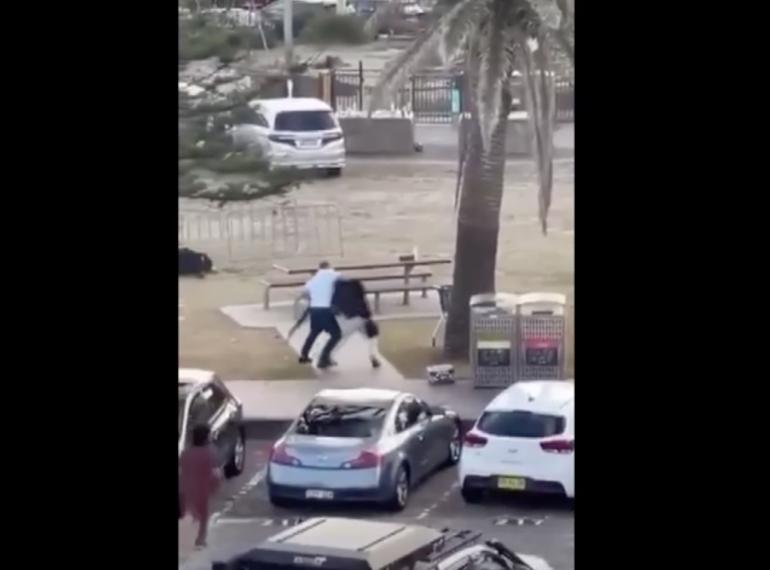 此外,《悉尼先驱晨报》援引现场画面称,一名路人男子以“惊人勇气”与一名疑似为枪手的男子扭打,最终夺下枪支。报道说,该枪手在停车场旁的草坪上持枪射击时,被这名身穿白色衬衫、黑色长裤的路人男子接近。该男子蹲伏在停车场车辆后方,在枪手射击时悄悄靠近,趁机夺枪并与其扭打,最终将其呵退。