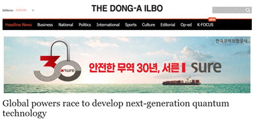 《东亚日报》近日发文称,数据量增加时会变慢的传统互联网不同,量子互联网的速度不受信息量影响,这得益于量子计算机的独特性质,它们可以兼容0和1,而传统计算机只能区分两者。