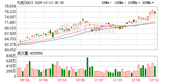 力拓计划未来三年每年投入约10亿澳元(约合6.6亿美元)扩张锂业务。公司预计,碳酸锂价格将从目前的每吨9000美元回升至2028年后的每吨1.7万美元以上,到2030年锂业务年收入将达到40亿美元。