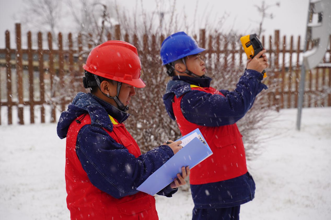 在榆林,气温降至-4℃,国网榆林供电公司(铜城之光)共产党员服务队队员张锋峰和马成龙来到吴堡县张家山镇高家塄村“煤改电”用户张虎民家中,用红外测温仪检测电采暖设备接线端子温度,仔细检查室内线路绝缘情况。