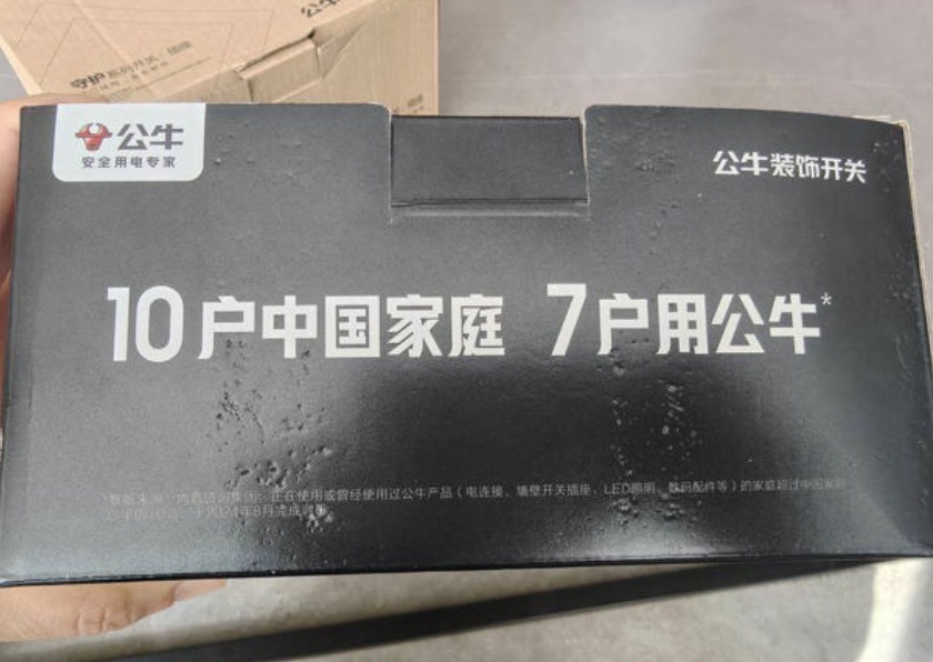 对于家的负责人所表述的情况,记者随后也走访了部分线下零售店铺,基本上与其所表述的情况相符。在“10户中国家庭,7户用公牛”的宣传语下,上述小字消费者很难一眼看清楚。