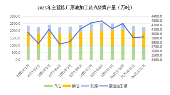 受炼厂负荷回落影响,四季度主营炼厂原油加工量及成品油产量走低。据统计,四季度主营炼厂原油加工量合计12064.5万吨,环比下降4.68%,成品油产量合计7135.8万吨,环比下降5.87%。