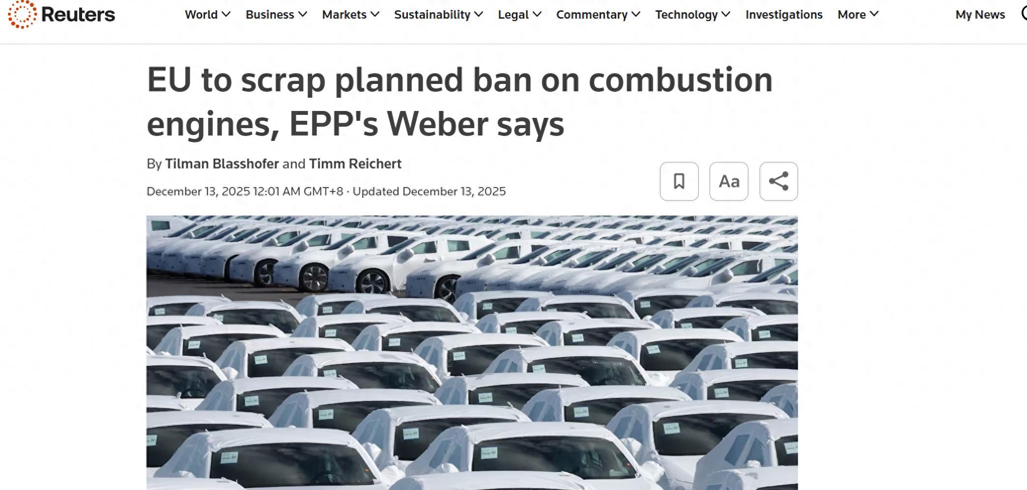 这一政策调整的背后,是欧洲汽车产业面临的现实挑战与内部立场分化。欧洲人民党主席曼弗雷德·韦伯直言,燃油发动机禁令属于严重的产业判断失误,废除该禁令势在必行。大众、Stellantis等传统车企希望放宽政策要求,以应对价格更具优势的中国竞争对手;而纯电动行业则表达了担忧,极星CEO迈克尔·洛舍勒强调,当前电动化相关的技术、充电基础设施及消费者接受度均已准备就绪,欧盟调整政策将削弱电动化转型决心,进一步拉大与中国的差距。
