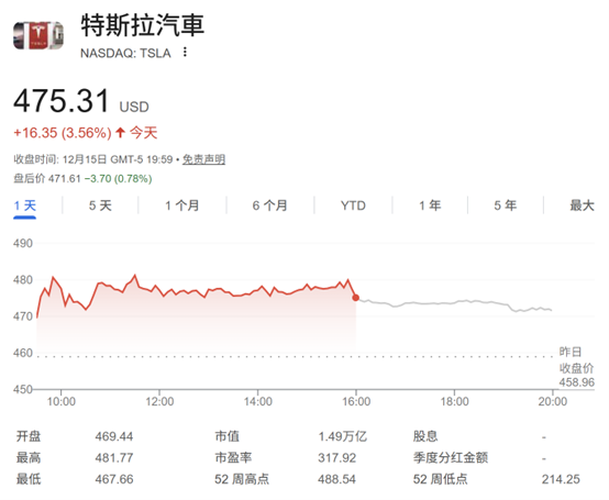 周一,特斯拉逆势上涨超3%,报475.31美元,市值接近1.5万亿美元。特斯拉最近在德克萨斯州奥斯汀市进行无人驾驶汽车测试助长了市场的乐观情绪。