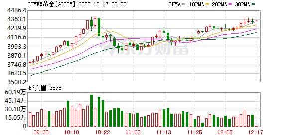 12月16日,欧美股市多数下跌,美联储突然释放“鹰派”信号,此外,据报道,美国总统特朗普将于周三面试另一位美联储主席候选人—美联储理事克里斯托弗·沃勒,今日早间(12月17日),黄金小幅低开后再度直线翻红。