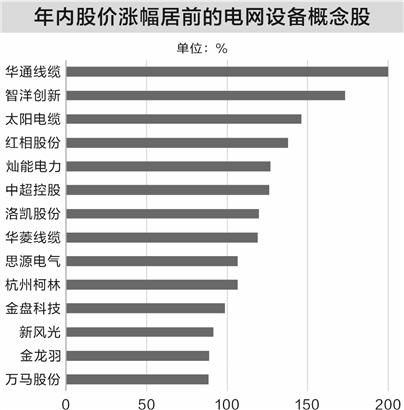 从个股来看,10只电网设备概念股年内累计涨幅超100%,包括华通线缆、智洋创新、太阳电缆、红相股份等。华通线缆年内累计涨幅近200%,排在首位。公司是我国电缆制造业中研发与工艺技术领先的企业之一,已取得美国UL、欧盟CE、德国TUV等多项国际认证,以及中国CRCC、CCC等国内强制性认证,是我国获UL认证大类最全的企业之一。