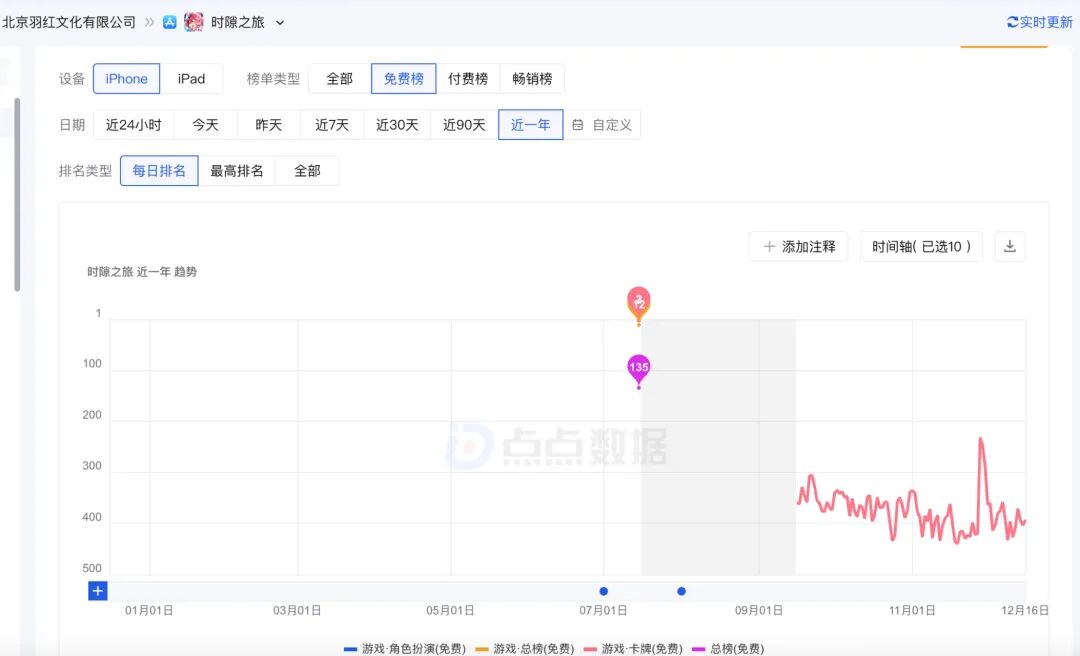 需要注意的是,该游戏于2025年7月15日正式上线,亦即上线仅三个月便遭下架。点点数据显示,该游戏自上线起在iOS持续处于“清榜”状态,直到9月16日才进入iOS卡牌类游戏免费榜前360名。另据手游分享社区TapTap数据,该游戏评分仅5.9分。