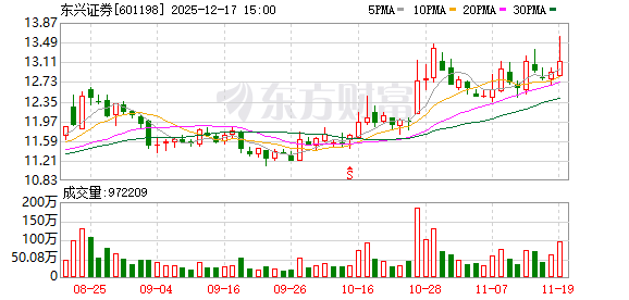 数据显示,截至11月19日,中金公司股价报34.89元/股,最新市值为1347亿元;东兴证券股价为13.13元/股,最新市值为424亿元;信达证券股价为17.79元/股,最新市值为577亿元。