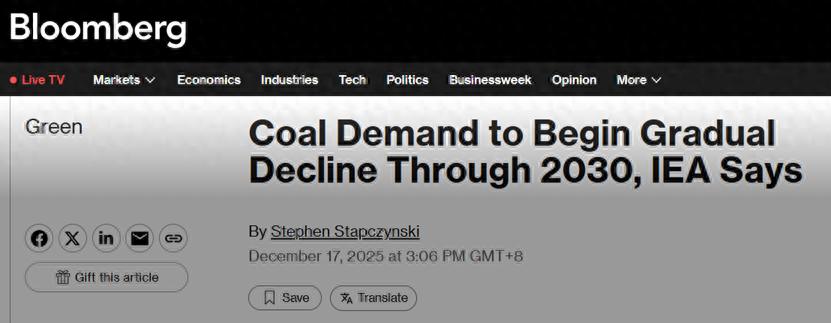 报道还提到,中国和印度的煤炭消费保持强劲,但未来增长具有不确定性,特别是中国的煤炭需求可能因再生能源调度和煤炭气化的项目而波动;美国因天然气价格上升及政策支持,煤炭使用量在2025年预计增长8%,打破历年下降趋势。