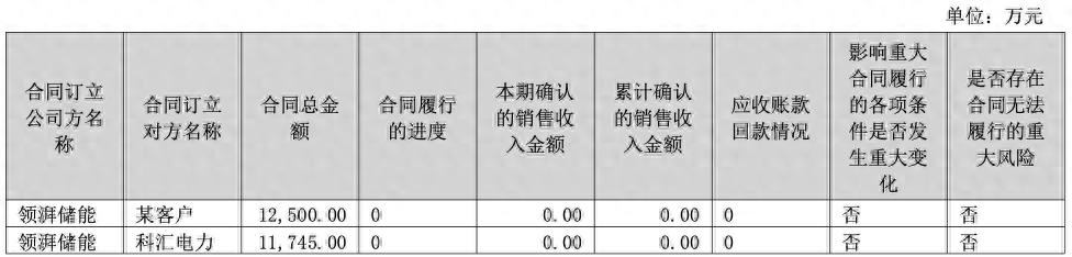 领湃科技2025年半年报显示,公司报告期内有两个日常经营重大合同,截至公告披露之日,合同履行进度皆为0。