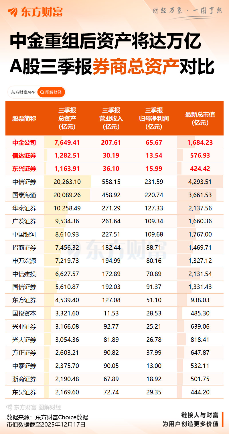 合并后,中金公司将成为行业第四家总资产跨入“万亿俱乐部”的券商。业内人士普遍认为,中金公司合并东兴证券、信达证券,正是剑指国际一流投行建设的决心体现。