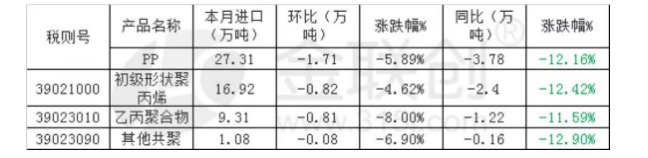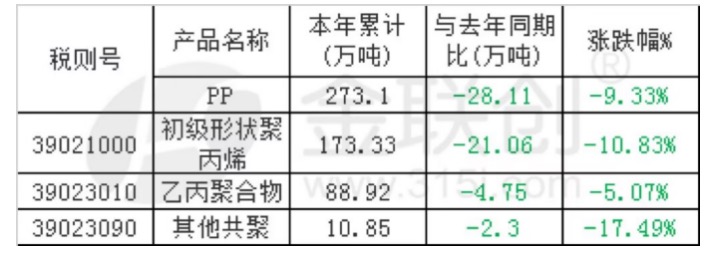 2025年10月份PP累计进口数量统计表