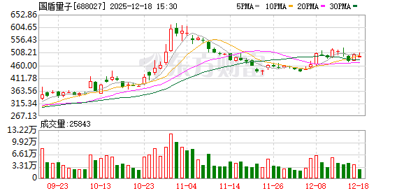 截至18日收盘,国盾量子股价报494元,年内涨超65%,总市值508.13亿元。