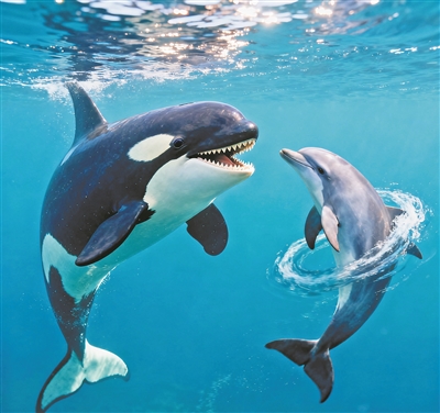 你或许以为海洋中的捕食者总是独来独往、竞争激烈,但《科学报告》上的一项新研究却向我们展示了一幅和谐共处的画面:虎鲸竟与太平洋短吻海豚并肩捕食,甚至还大方地分享美食!