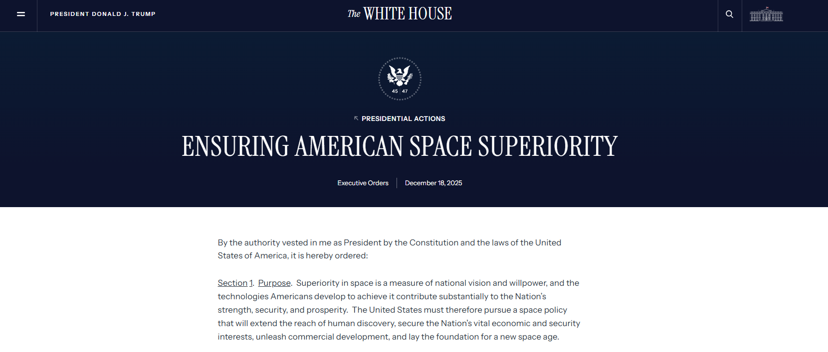 据央视新闻报道,美东时间周四(18日),特朗普签署了一项行政命令,为“美国优先”的太空政策制定了愿景,以确保美国在太空探索、安全和商业领域“引领世界”。