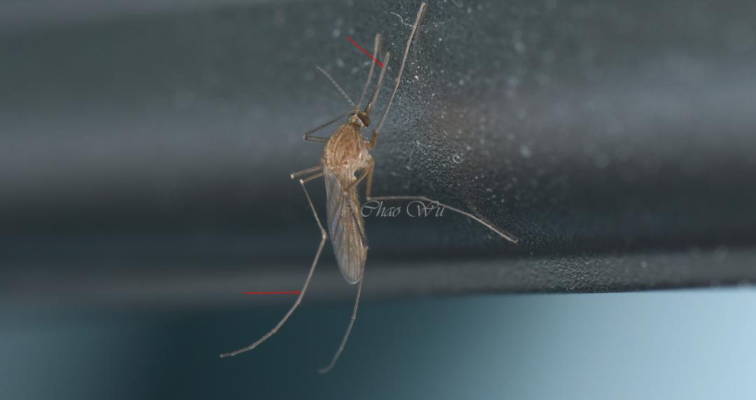 1.看前后足:在这些“蚊子”的六条腿中,摇蚊通常前足较长,而蚊科的“蚊子”后足较长。在停落时,摇蚊多用中后足支撑身体,而吸血的蚊往往用前中足支撑身体,而翘着后足。