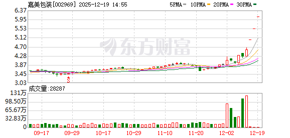 12月19日,嘉美包装(002969.SZ)连续第三天涨停,连续3个交易日收盘价格涨幅偏离值累计超过20%。消息层面上,扫地机器人企业追觅的创始人俞浩近日拟以20多亿元收购嘉美包装的控股权。