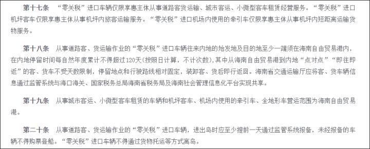 就算你通过企业渠道获得了购买资格,也会受到严格限制。首先,这辆车不能自由转让——即使因为特殊原因需要转让,转让前也应征得海口海关同意并办理相关手续,如果是转让给非享受优惠的主体还应补缴税款;其次,所有“零关税”进口车必须登记为营运性质,意味着15年就要报废;第三,这台车每年在海南以外地区累计停留不得超过120天。