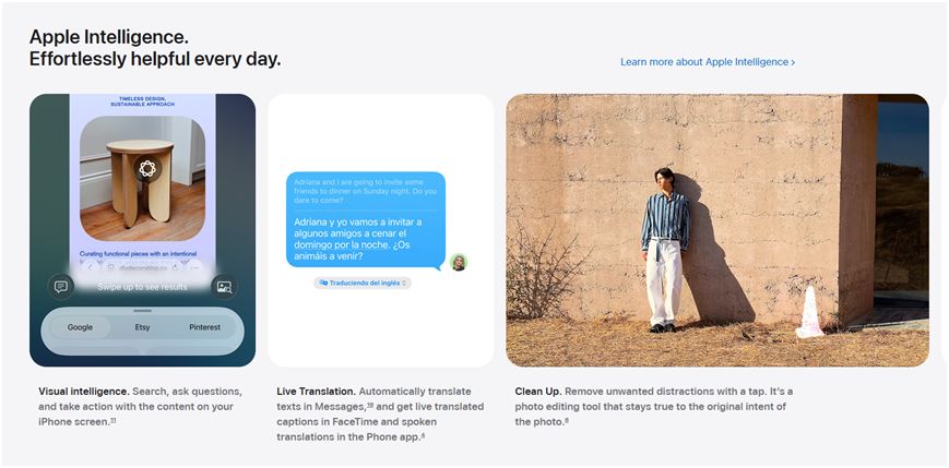 iPhone 17搭载Apple Intelligence 图片来源:苹果官网